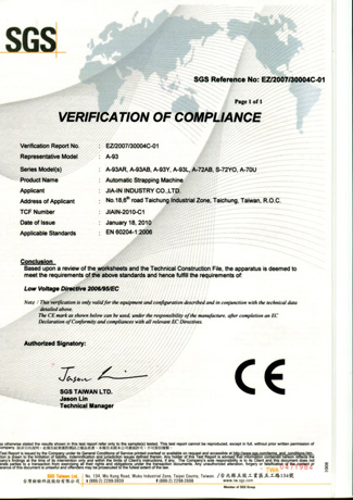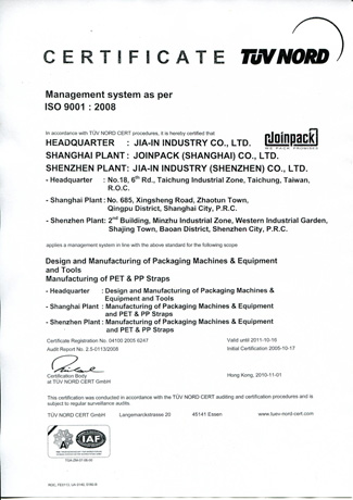 嘉音包裝設備榮獲ISO9001、CE、GS認證,產品品質值得信賴。
